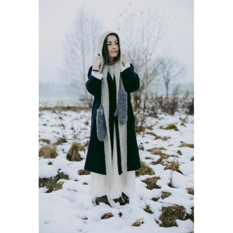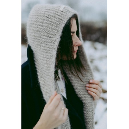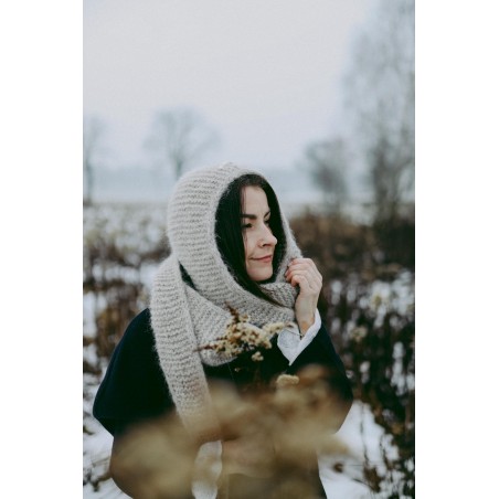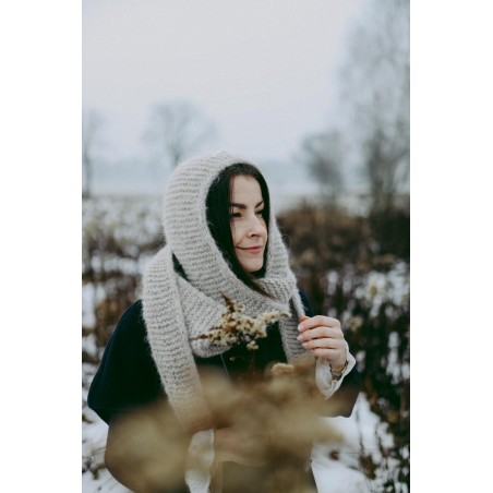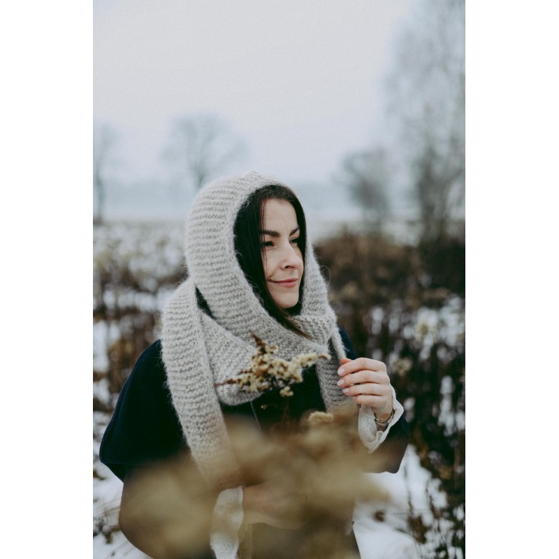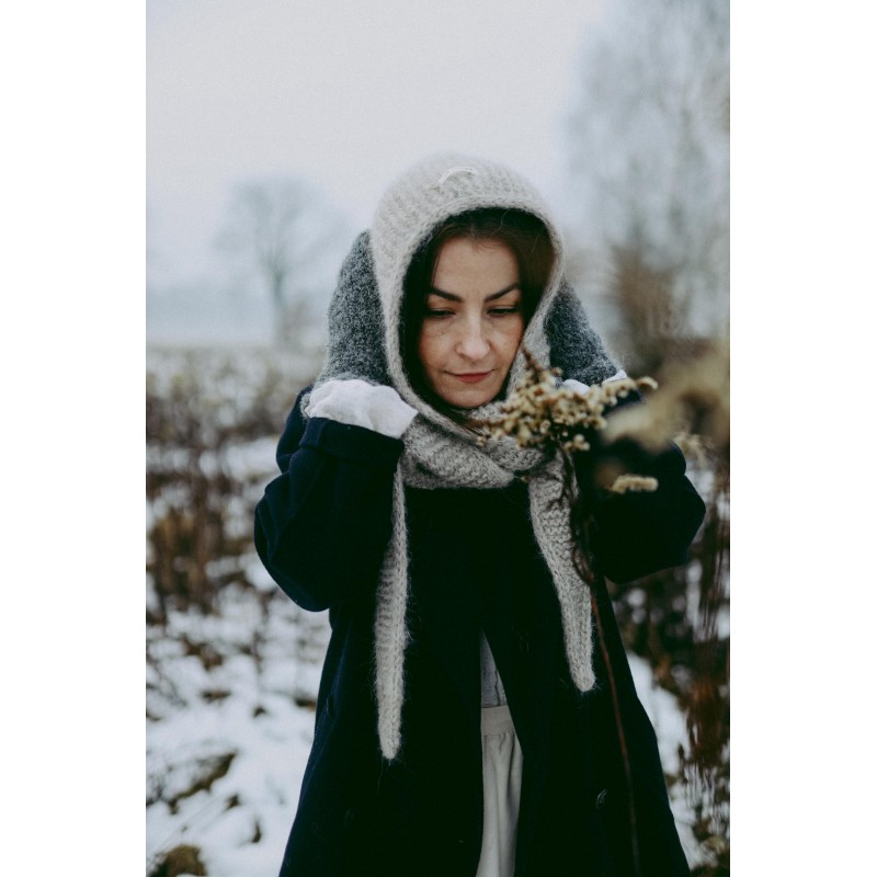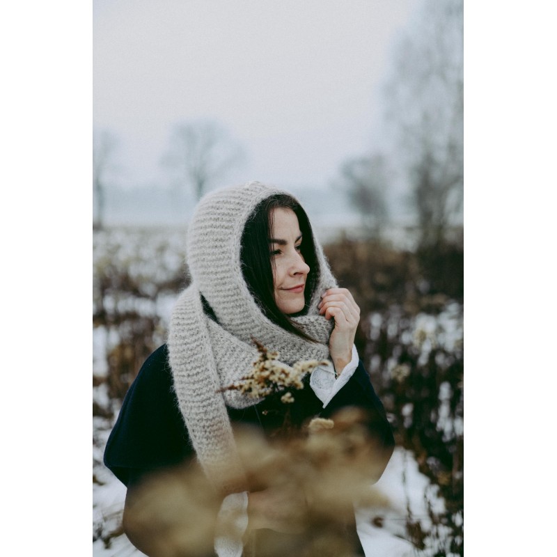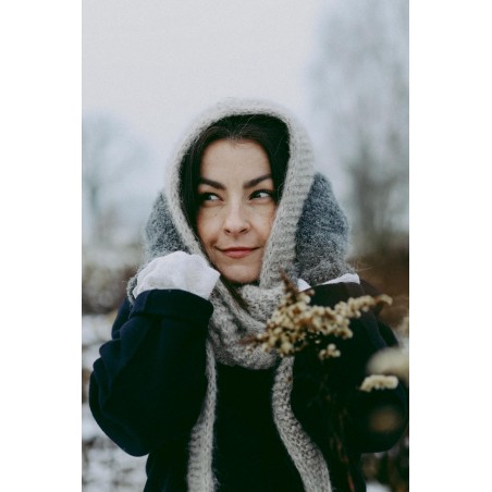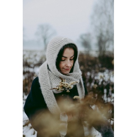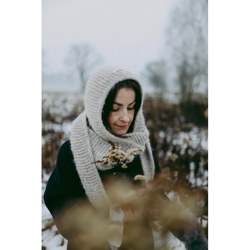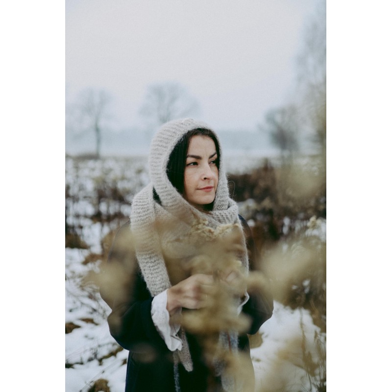 Szalikokaptur Agatha to ręcznie dziergany kapturek, który idealnie zastąpi czapkę czy opaskę oraz szalik. Kapturek ten jest na tyle szeroki, że nie musisz dbać o fryzurę ;) nie elektryzuje włosów i nie przygniata ich. Będzie idealnym dodatkiem do każdej Twojej stylizacji, niezależnie czy masz ochotę na płaszcz, puchową kurtkę czy dżinsową katanę.