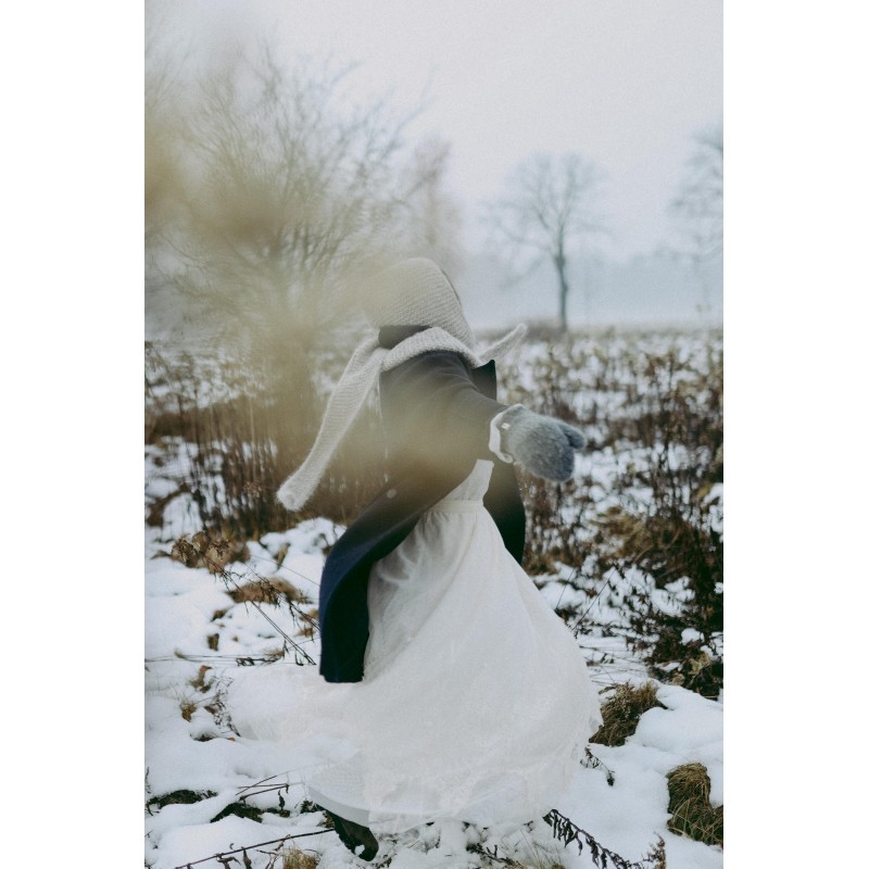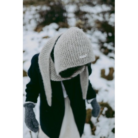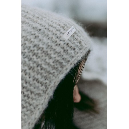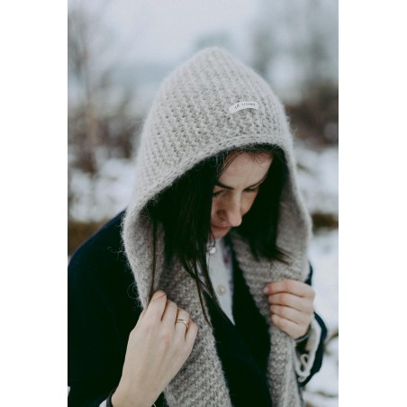 Włókna alpaki są lekkie jak chmurka a jednocześnie bardzo ciepłe, miękkie i wytrzymałe, dzięki czemu kapturek jest cieplutki i maksymalnie chroni przed wiatrem.